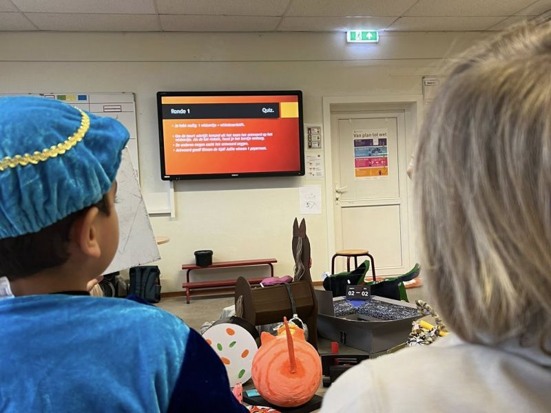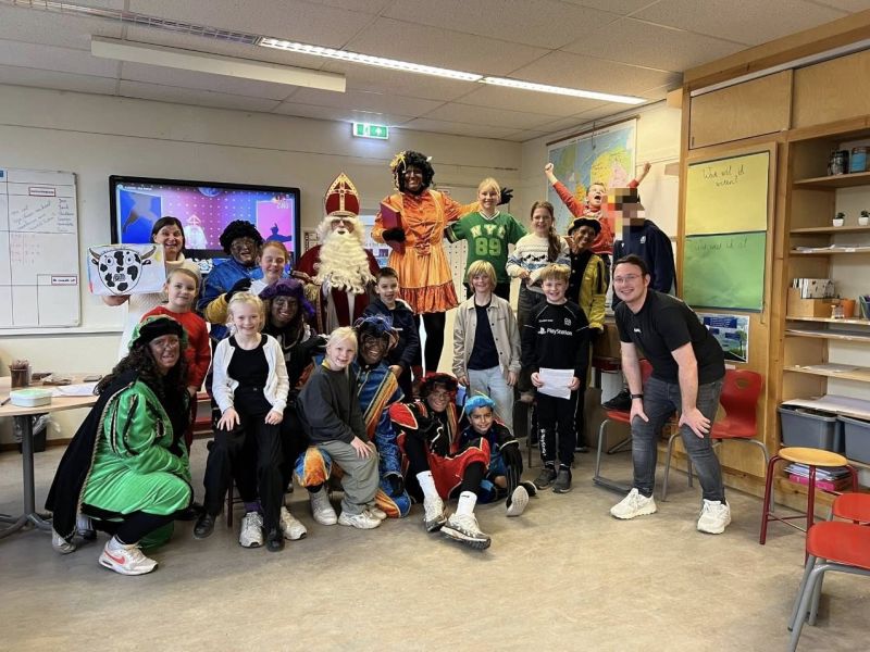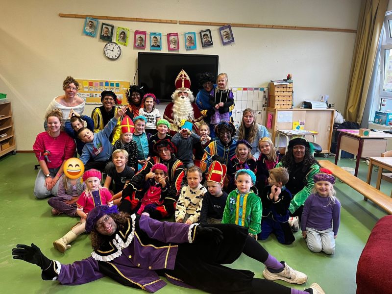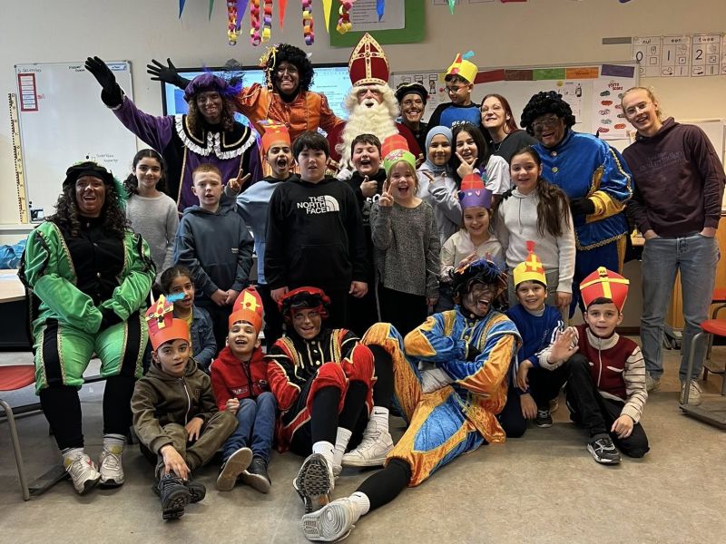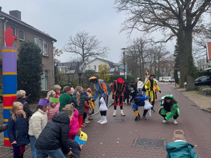 Om 12:00 uur was het grote moment daar: Sinterklaas en de pieten kwamen langs! De kinderen vonden overal puzzelstukjes die uiteindelijk naar de Sint leidden. En toen ze hem zagen… renden ze er massaal op af. Wat een warm welkom!