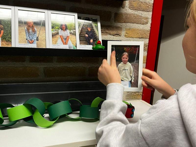 Zo maken we een groepsfoto die iedereen mee naar huis krijgt, en mag de leerling die vertrekt een eigen foto ophangen op onze “Wall of Fame” — een speciale plek waar alle oud-leerlingen van de Taalschakelklas een blijvend plekje hebben.