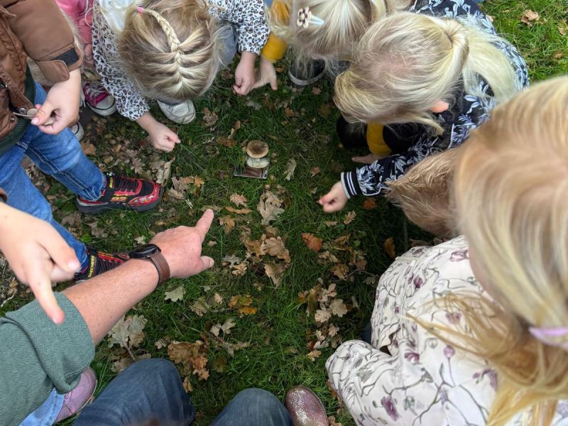 Op het schoolplein gingen de kinderen daarna meteen zelf op zoek naar paddenstoelen!