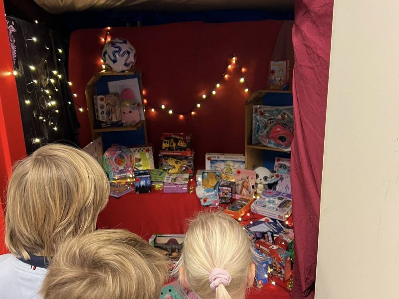 Vanochtend kwam er een piet op bezoek om de kinderen te verrassen. Zij liet zien dat er boven een schatkamer met cadeautjes is voor stamgroep 1 en 3 – wat een verrassing!